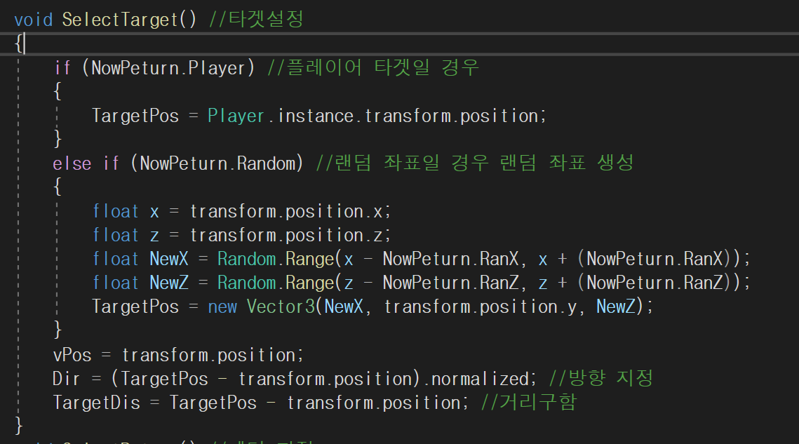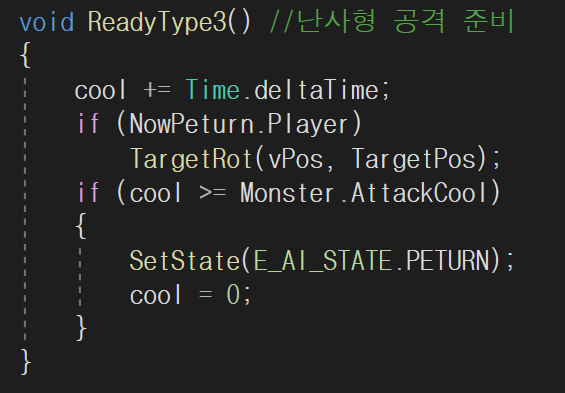 그 아래는 유저를 몇초동안 쳐다볼지 정하는 if와 패턴 상태로 넘어가는 쿨타임이 있습니다.