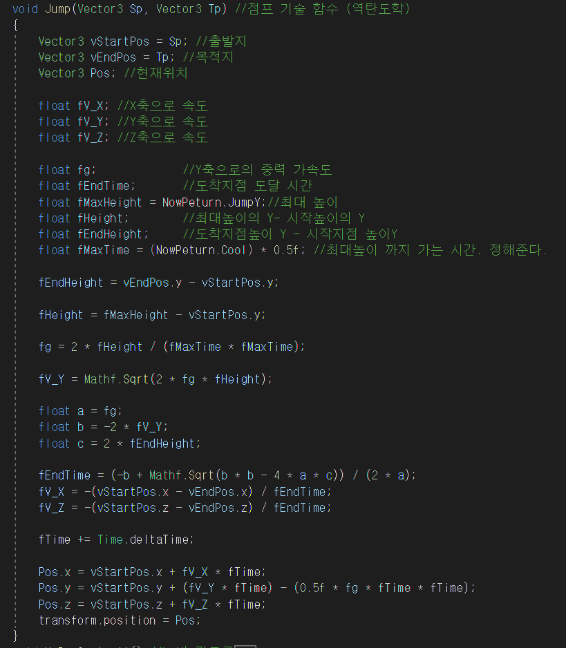 넘겨주는 코드입니다. 투사체 역탄도 역시 돌진패턴의 점프와 코드는 동일하게 되어있습니다.