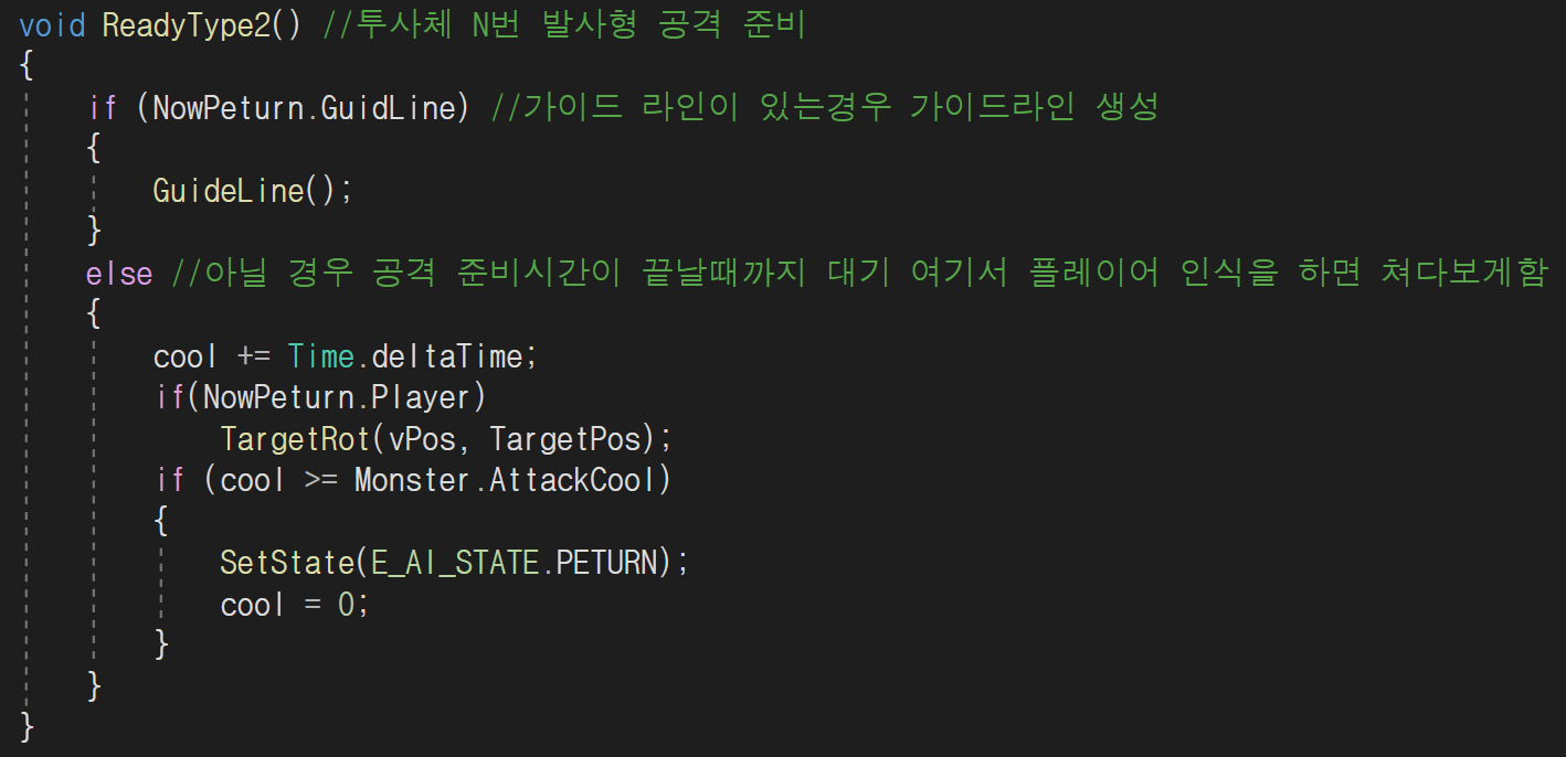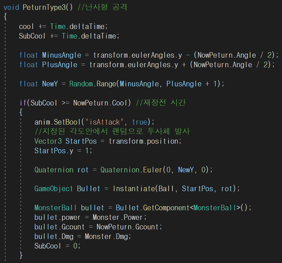 투사체 발사형의 경우 발사를 여러번 하는 몬스터는 일정 쿨타임마다 발사하도록 하였습니다.