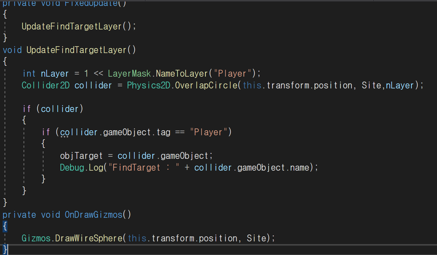레이어를 이용하여 해당 레이어를 가진 오브젝트만 콜라이더 변수에 추가하여 이용 할 수 있다.