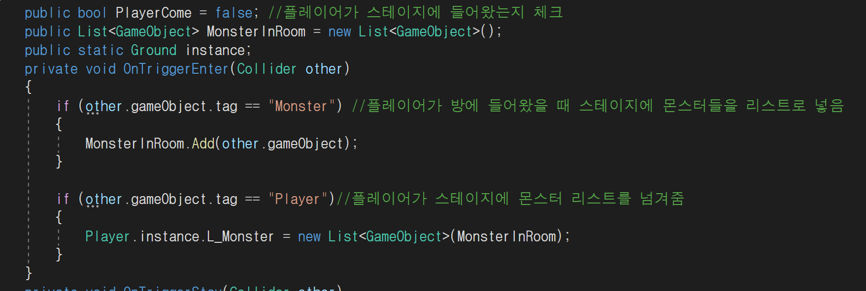 일단 그라운드 스크립트에 들어오는 몬스터를 List에 넣고 플레이어가 그라운드에 들어오면 List를
